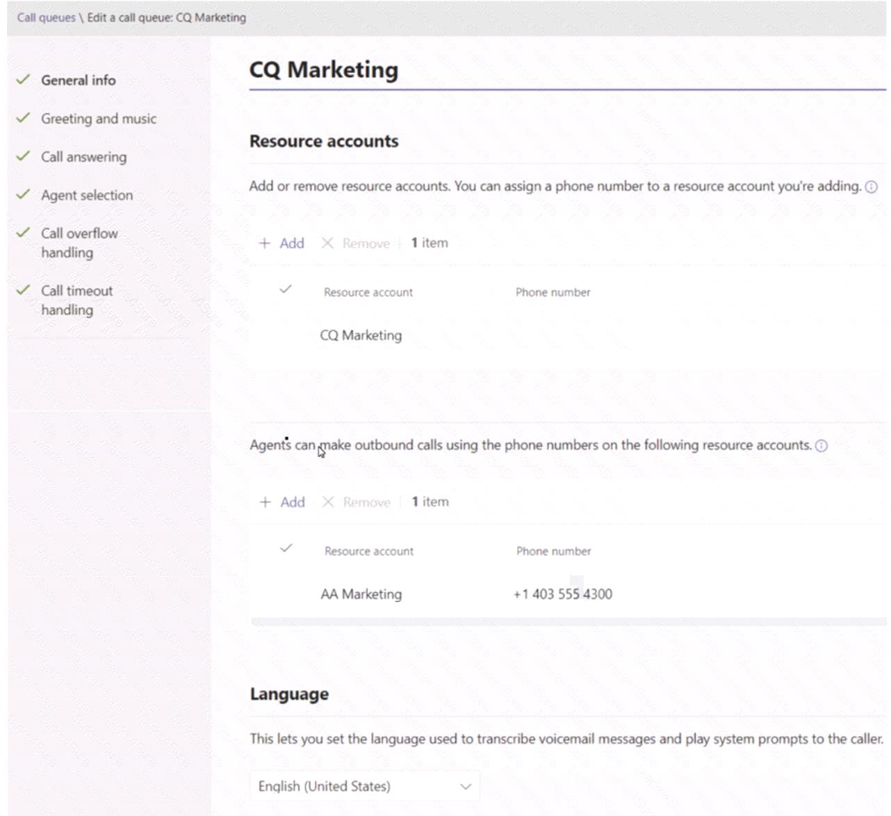 You create a call queue named CQ Marketing.