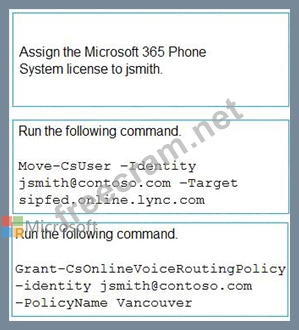 You need to migrate a Vancouver facility user named jsmith from Skype for Business Server to Teams.