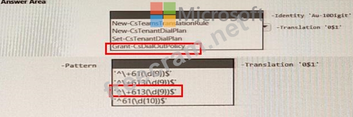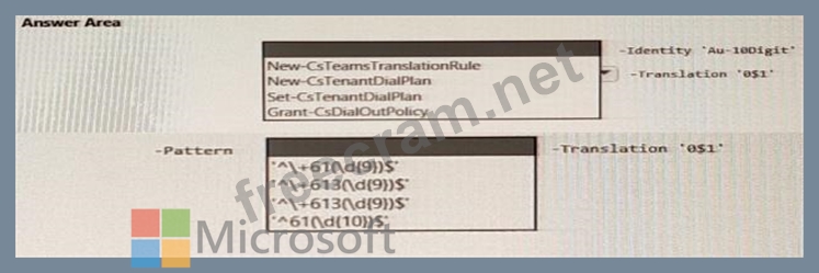 You need to ensure that numbers dialed from the Melbourne warehouse conform to the dialing rules of the phone earner. How should you complete the command? To answer, select the appropriate options in the answer are a. NOTE: Each correct selection is worth one point.