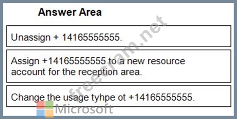 You need to implement the planned changes for the +14165555555 reception area number. You create a new call queue.