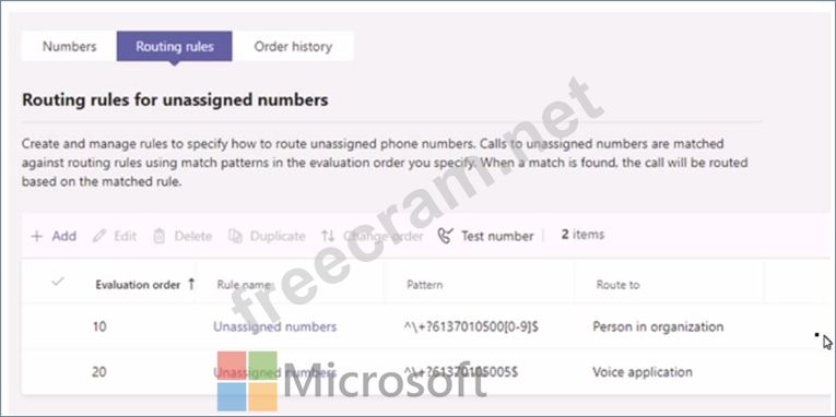 You have routing rules for unassigned phone numbers as shown in the following exhibit.