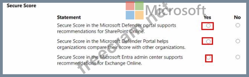 For each of the following statements, select Yes if the statement is true. Otherwise, select No, NOTE: Each correct selection is worth one point.