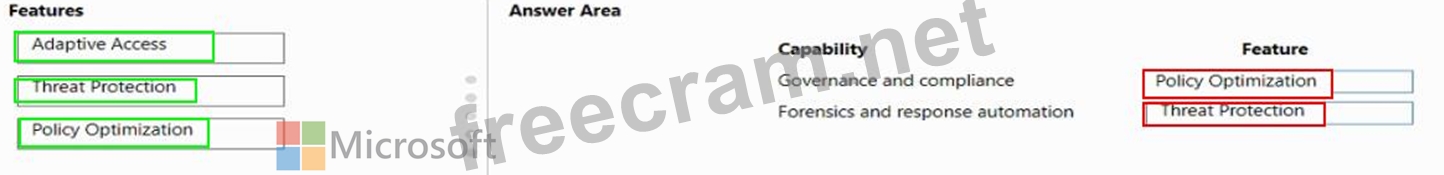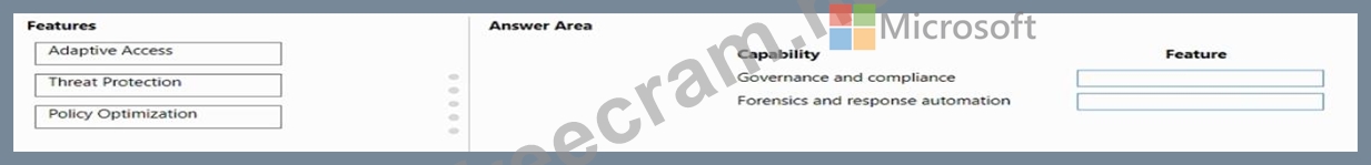 Which features should you choose? To answer, drag the appropriate features to the correct capabilities. Each feature may be used once, more than once, or not at all. You may need to drag the split bar between panes or scroll to view content.