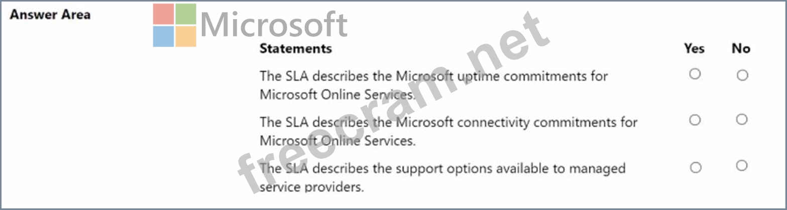 For each of the following statements, select Yes if the statement is true. Otherwise, select No.