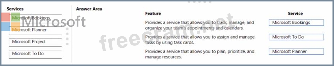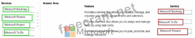 Which services should you recommend? To answer, drag the appropriate services to the correct features. Each service may be used once, more than once, or not at all You may need to drag the split bar between panes or scroll to view content NOTE: Each correct selection is worth one point.