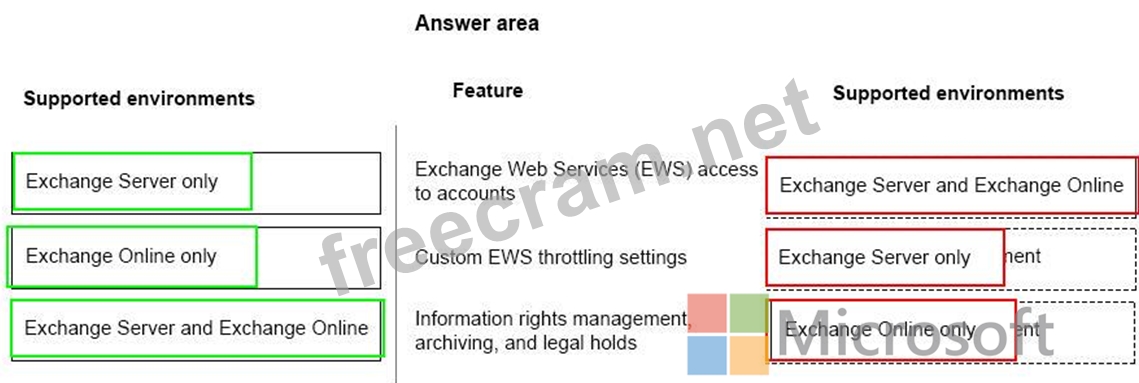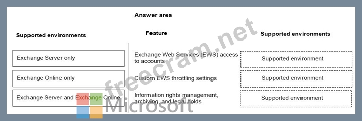 You need to identify differences between the features in Exchange Online and Exchange Server.