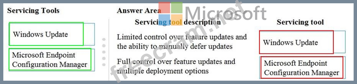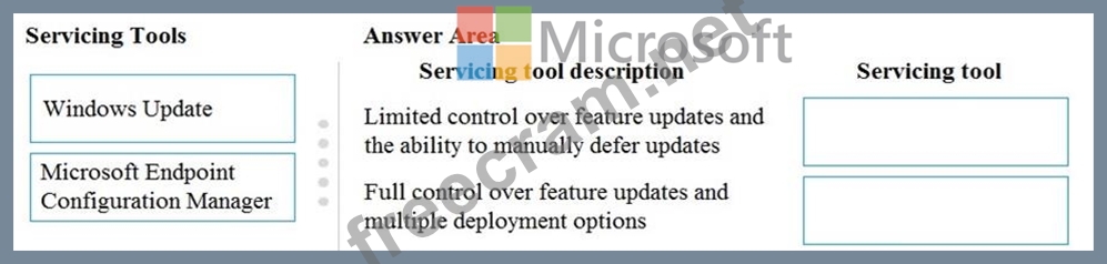 You need to identify which servicing tools the company should use for Windows 10.