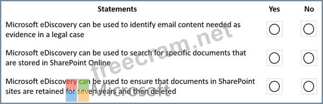 Question 152: A company is evaluating Microsoft 365. For each of the follo...