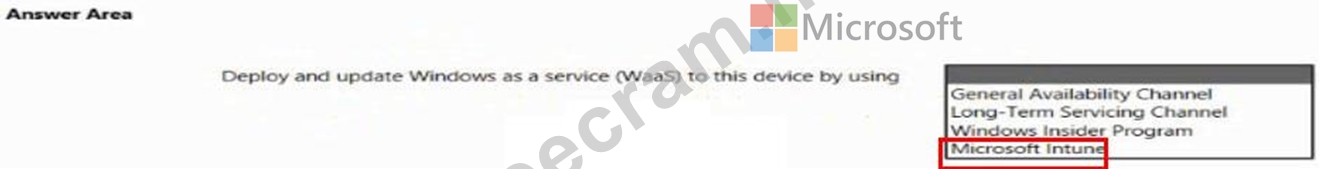A company uses Microsoft 36S. The company has an application that runs on a device that does not have internet access. The device can only be updated manually every two years. You need to determine how you should update the device. Select the answer that correctly completes the sentence.
