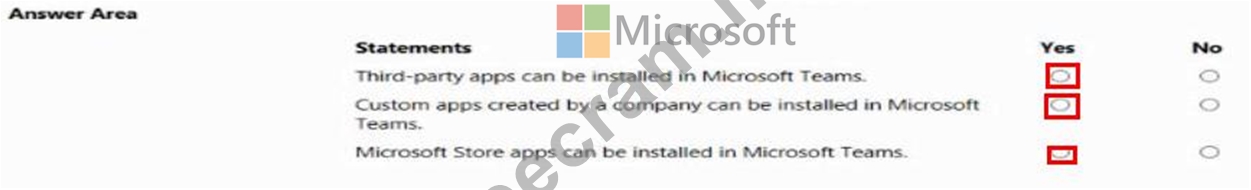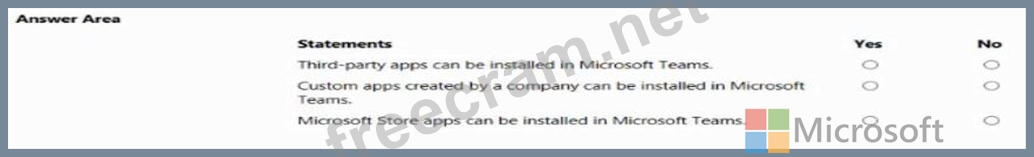 Question 104: A company uses Microsoft Team. Instructions: For each of the...