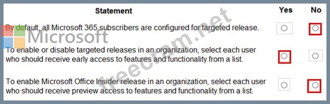 Question 152: A company is evaluating Microsoft 365. For each of the follo...