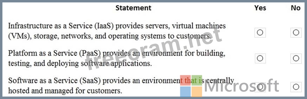 For each of the following statements, select Yes if the statement is true. Otherwise, select No.