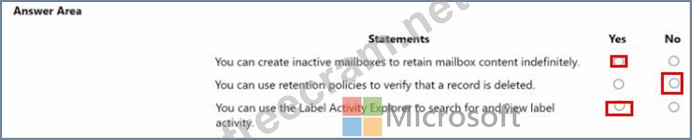 Instructions: For each of the following statements, select Yes if the statement is true. Otherwise, select No. NOTE: Each correct selection is worth one point.