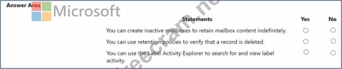 Question 152: A company is evaluating Microsoft 365. For each of the follo...