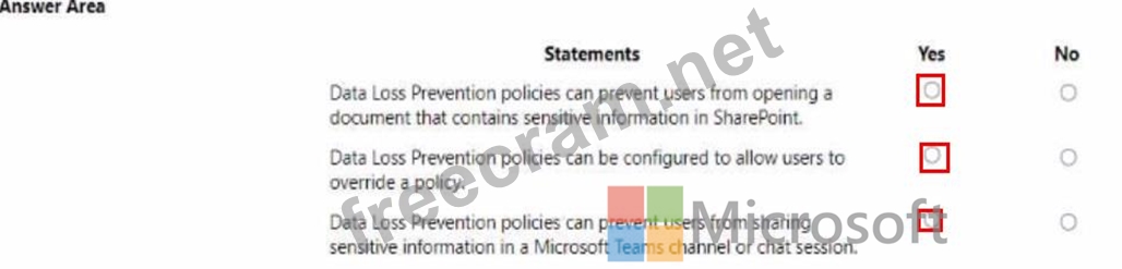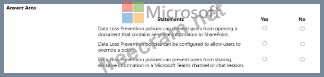 Question 152: A company is evaluating Microsoft 365. For each of the follo...