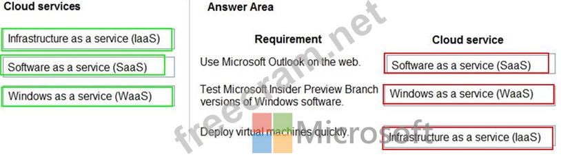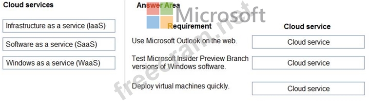 Which cloud services should you use? To answer, drag the appropriate cloud services to the correct requirements. Each cloud service may be used once, more than once, or not at all. You may need to drag the split bar between panes or scroll to view content.