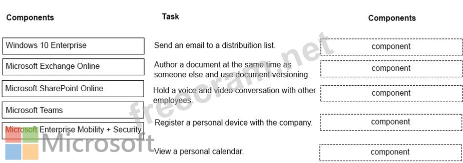 Match each component to its task. To answer, drag the appropriate components from the column on the left to the tasks on the right. Each component may be used once, more than once, or not at all.