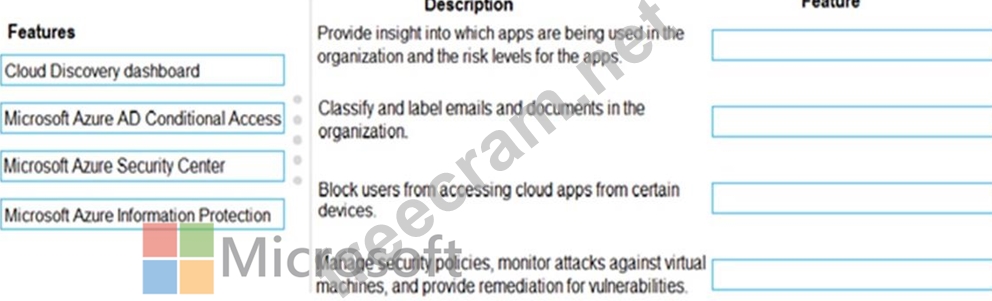 Match each feature to the correct description. To answer, drag the appropriate feature from the column on the left to its description on the right. Each feature may be used once, more than once, or not at all.