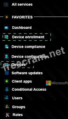 In the Microsoft 365 Device Management portal, which two blades should you use? To answer, select the appropriate options in the dialog box in the answer area.