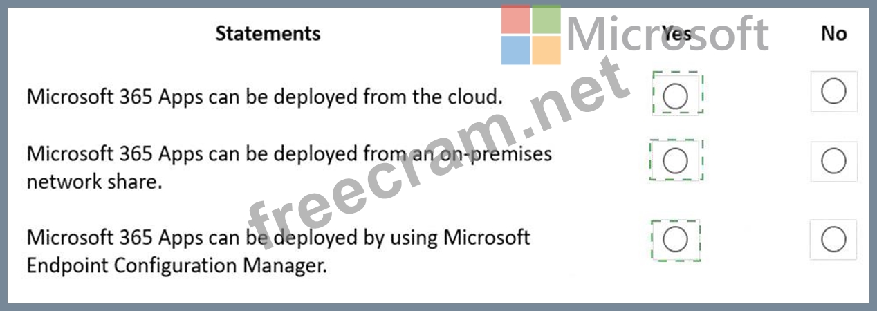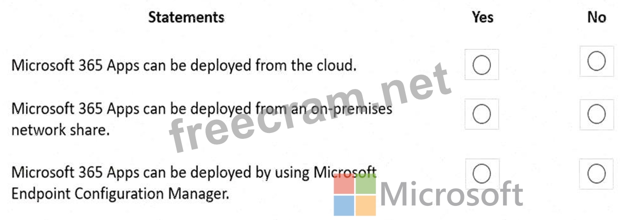 Question 174: A company uses Microsoft 365. instructions: For each of the ...