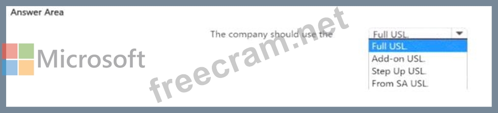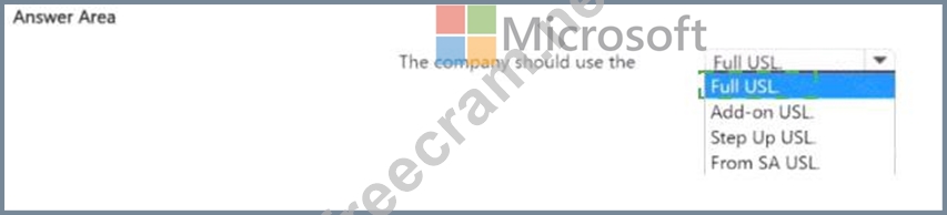 The company has not deployed any Microsoft products. The company requires a user subscription license (USL) that minimizes license costs.