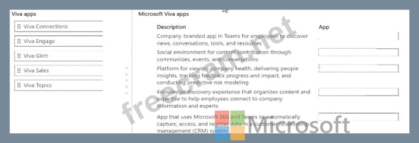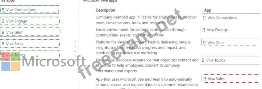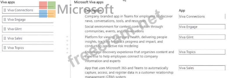 Match each app to its feature. To answer, move the appropriate Viva app from the column on the left to its description on the right. You may use each app once, more than once or not at all.