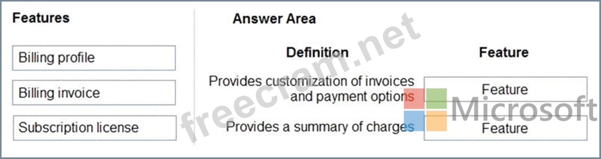 Match each feature to its description. To answer, drag the appropriate feature from the column on the left to its description on the right. Each feature may be used once, more than once, or not at all.