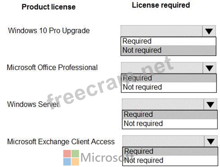 You need to determine which products require the purchase of Microsoft 365 licenses for new employees.