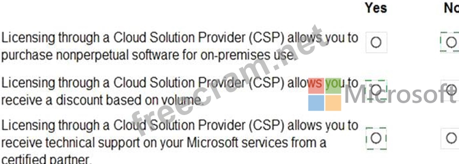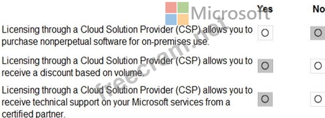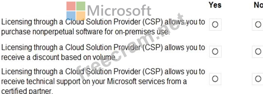 For each of the following statements, select Yes if the statement is true. Otherwise, select No.