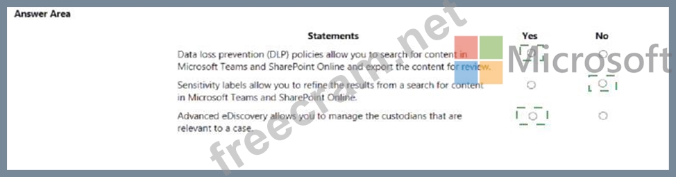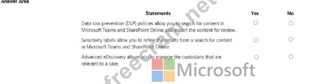 Question 174: A company uses Microsoft 365. instructions: For each of the ...