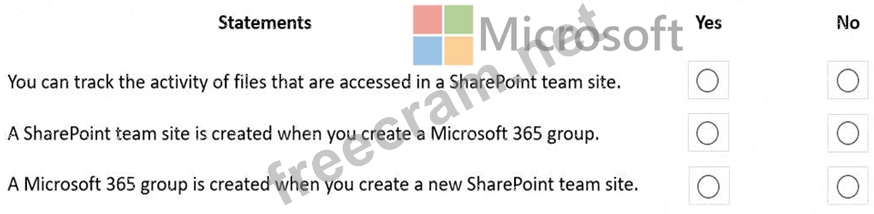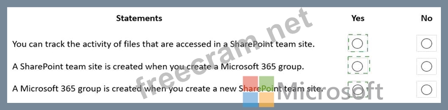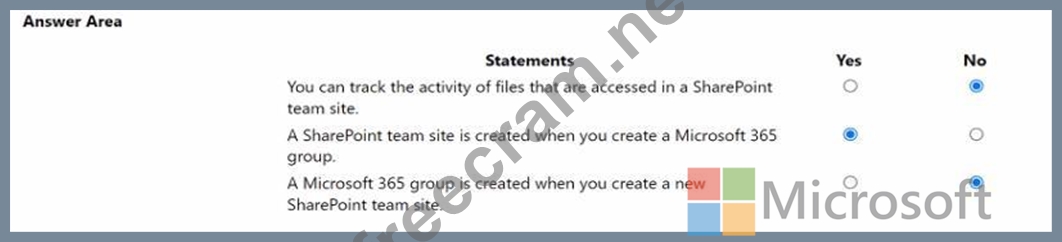 Question 174: A company uses Microsoft 365. instructions: For each of the ...