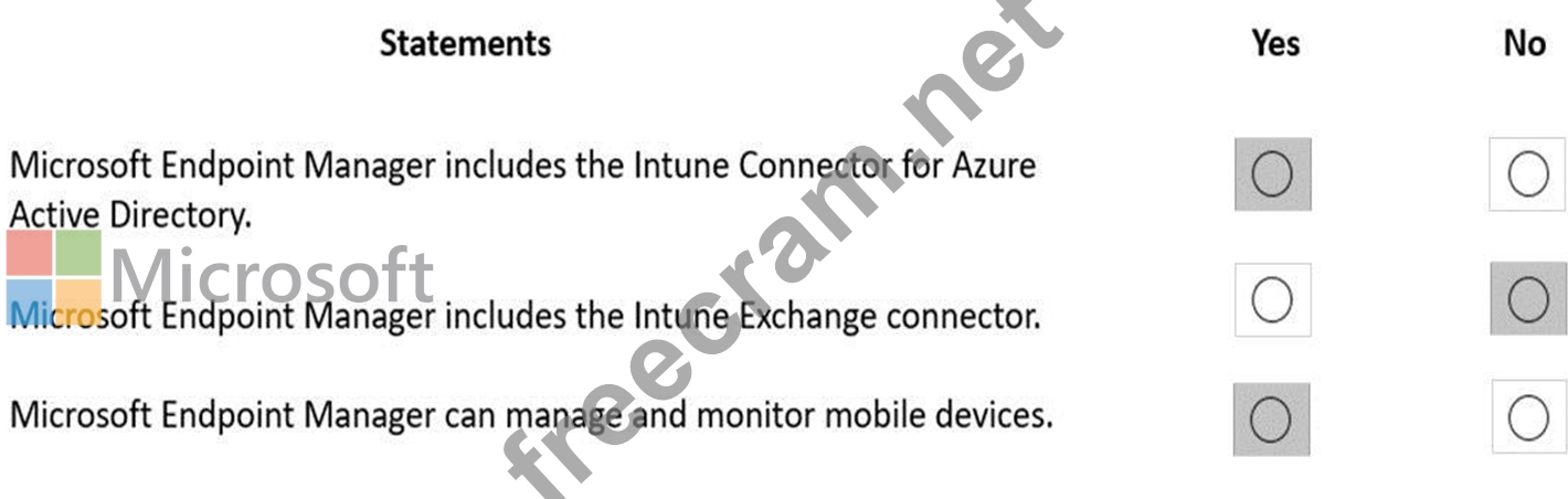 Instructions: For each of the following statements, select Yes if the statement is true. Otherwise, select No.