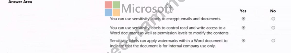 Question 174: A company uses Microsoft 365. instructions: For each of the ...