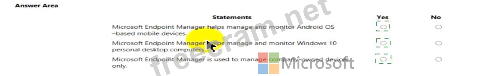 Instructions: For each of the following statements, select Yes if the statement is true. Otherwise, select No.
