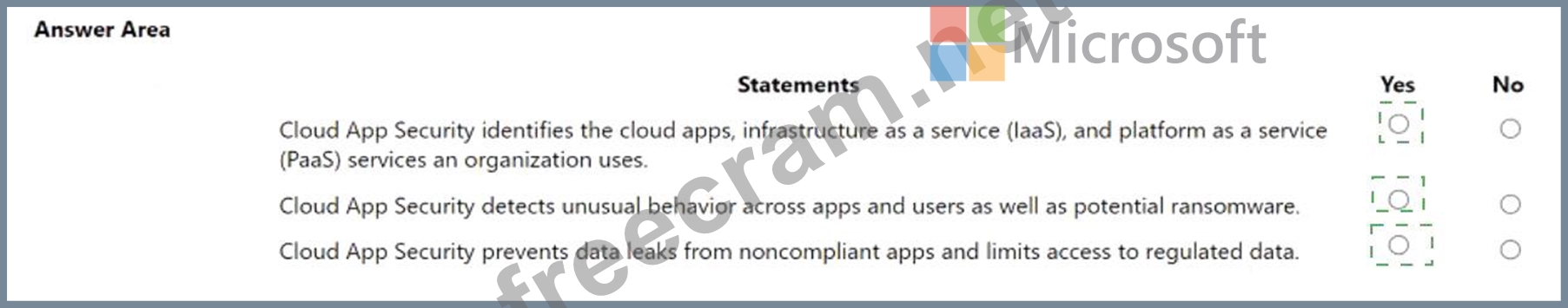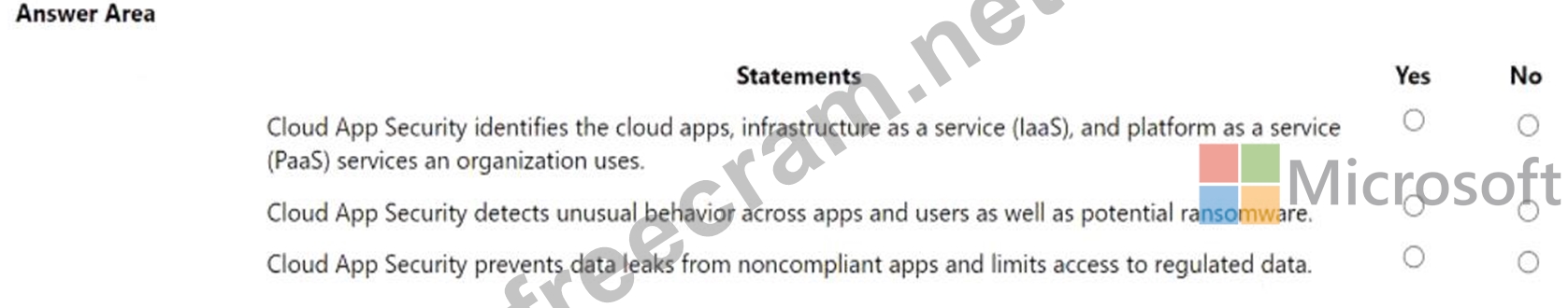 Instructions: For each of the following statements, select Yes if the statement is true. Otherwise, select No.