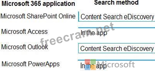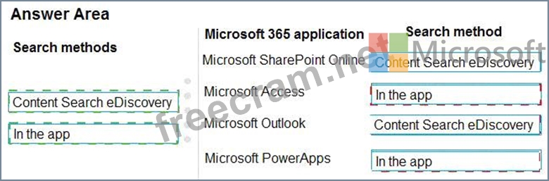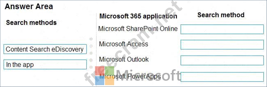 How should you search for the data? To answer, drag the appropriate search methods to the correct Microsoft