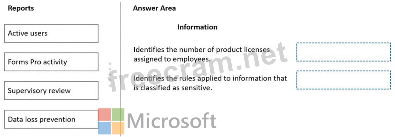 Which reports should you select? To answer, drag the appropriate reports to the correct type of information.