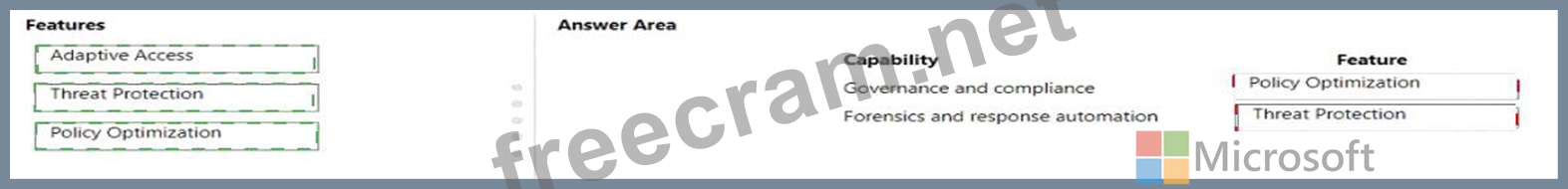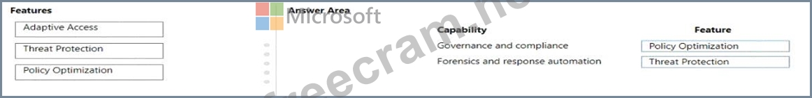Which features should you choose? To answer, drag the appropriate features to the correct capabilities. Each feature may be used once, more than once, or not at all. You may need to drag the split bar between panes or scroll to view content.