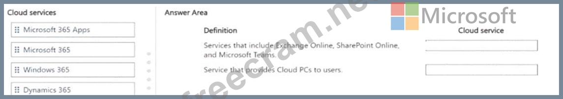 Match each cloud service to its definition.Each cloud service may be used once, more than once, or not at all.