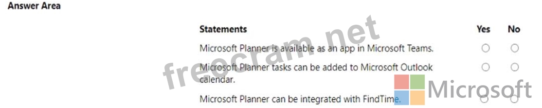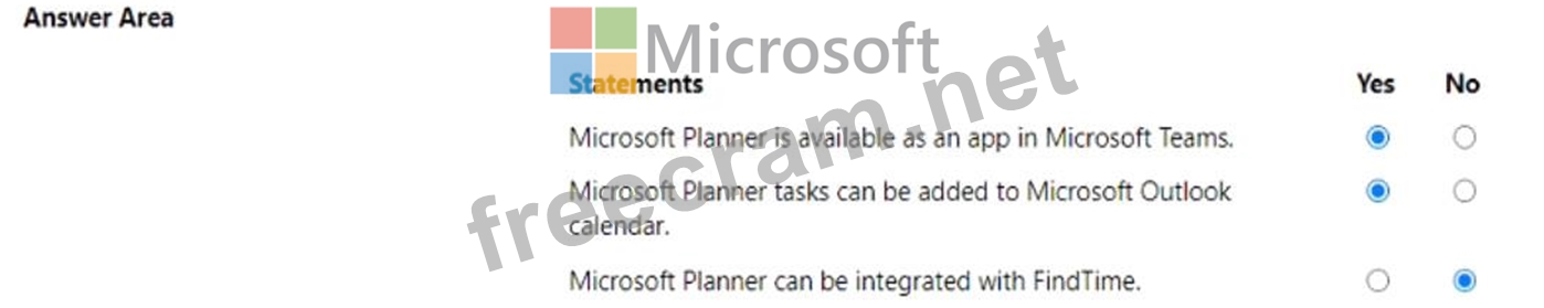 For each of the following statements, select Yes if the statement is true. Otherwise, select No.