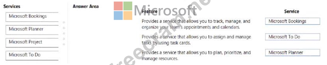 The company is evaluating work management features in Microsoft 365. You need to recommend the appropriate Microsoft 365 services.
