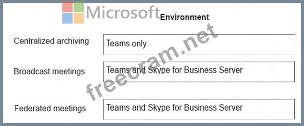 A company plans to deploy collaboration tools for employees. The company does not plan to deploy a hybrid environment. You need to identify the features that are available in Teams and Skype for Business Server.