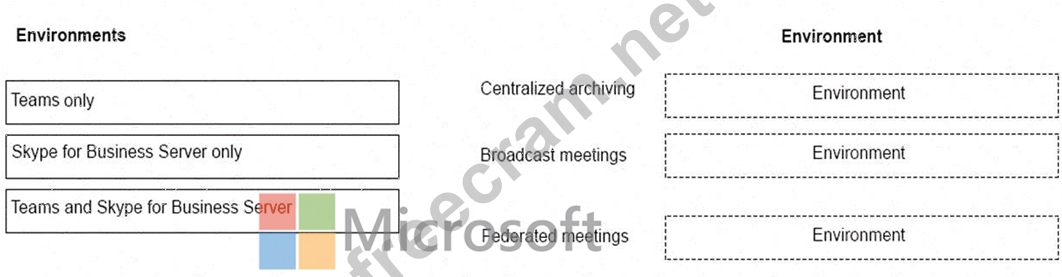 Match each environment to its feature. To answer, drag the appropriate environment form the column on the left to thefeatures on the right. Each environment may be used once, more than once, or not at all.