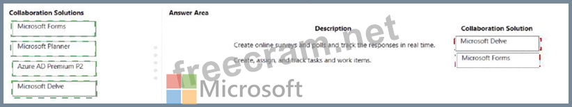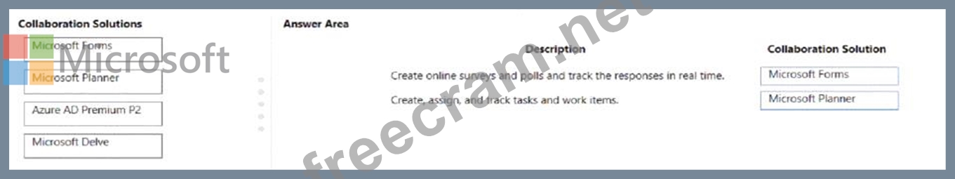 Match each collaboration solution to its description. To answer, drag the appropriate collaboration solution from the column on the left to its description on the right.Each collaboration solution may be used once, more than once, or not at all.