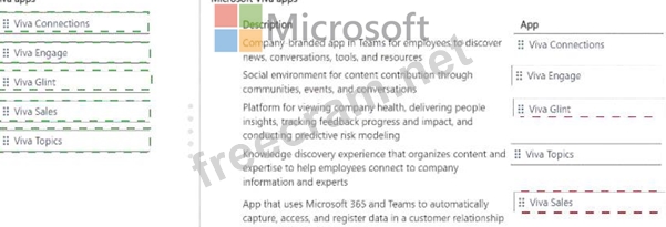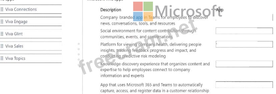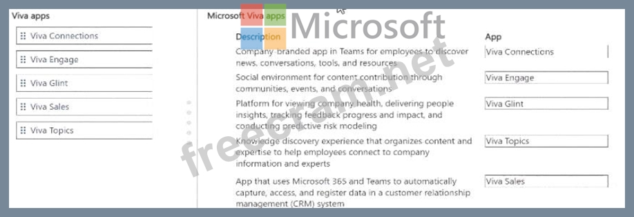 Match each app to its feature. To answer, move the appropriate Viva app from the column on the left to its description on the right.You may use each app once, more than once or not at all.