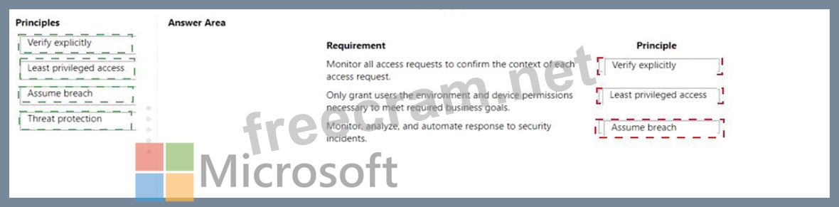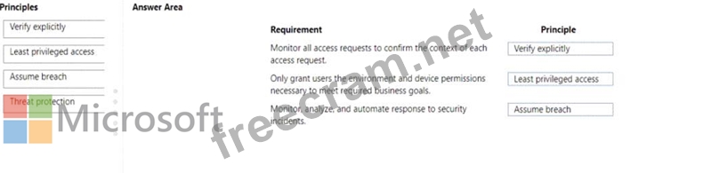 Which Zero Trust security principle should yourecommend? To answer, drag the appropriate principles to the correct requirements. Each principle may be used once, more than once, or not at all. You may need to drag the split bar between panes or scroll to view content NOTE: Each correct selection I worth one point.