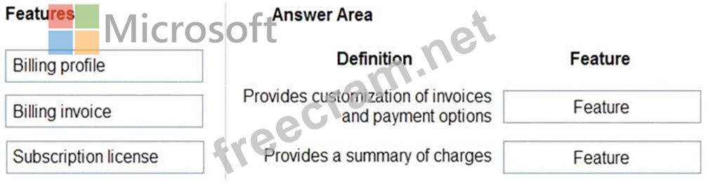 You need to identify billing and purchasing features in Microsoft 365.