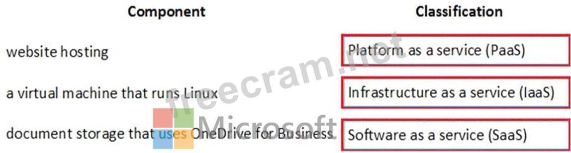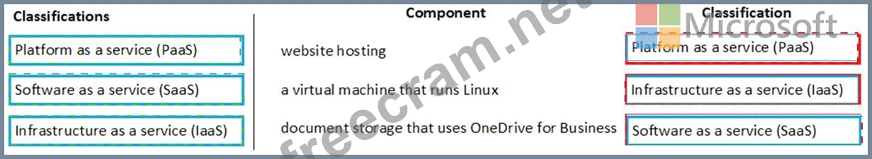 Match each component to its classification. To answer, drag the appropriate components from the column on the left to its classifications on the right. Each component may be used once, more than once, or not at all.