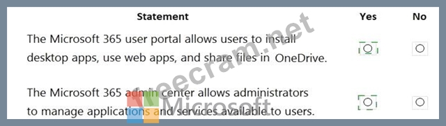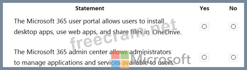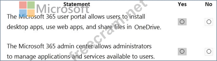 For each of the following statements, select Yes if the statement is true. Otherwise, select No.