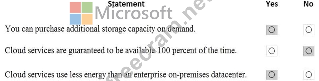 For each of the following statements, select Yes if the statement is true. Otherwise, select No.